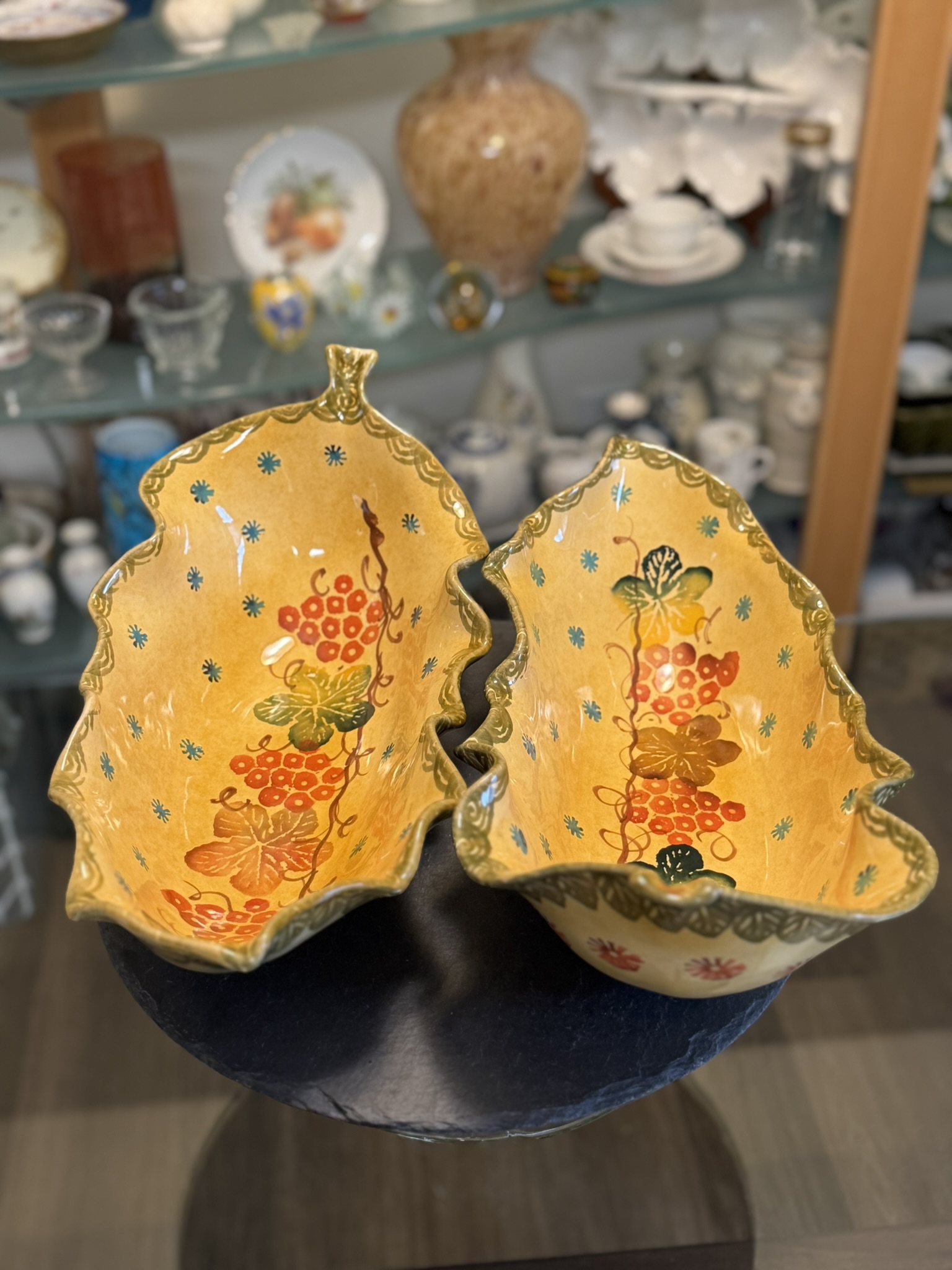 Popular with collectors of mid-century Italian ceramics, these pieces reflect a postwar renaissance of regional ceramic styles adapted for global appeal. The grape motif, a timeless emblem of abundance and Italian terroir, makes these dishes not just serveware but storytelling vessels rooted in the Mediterranean table tradition