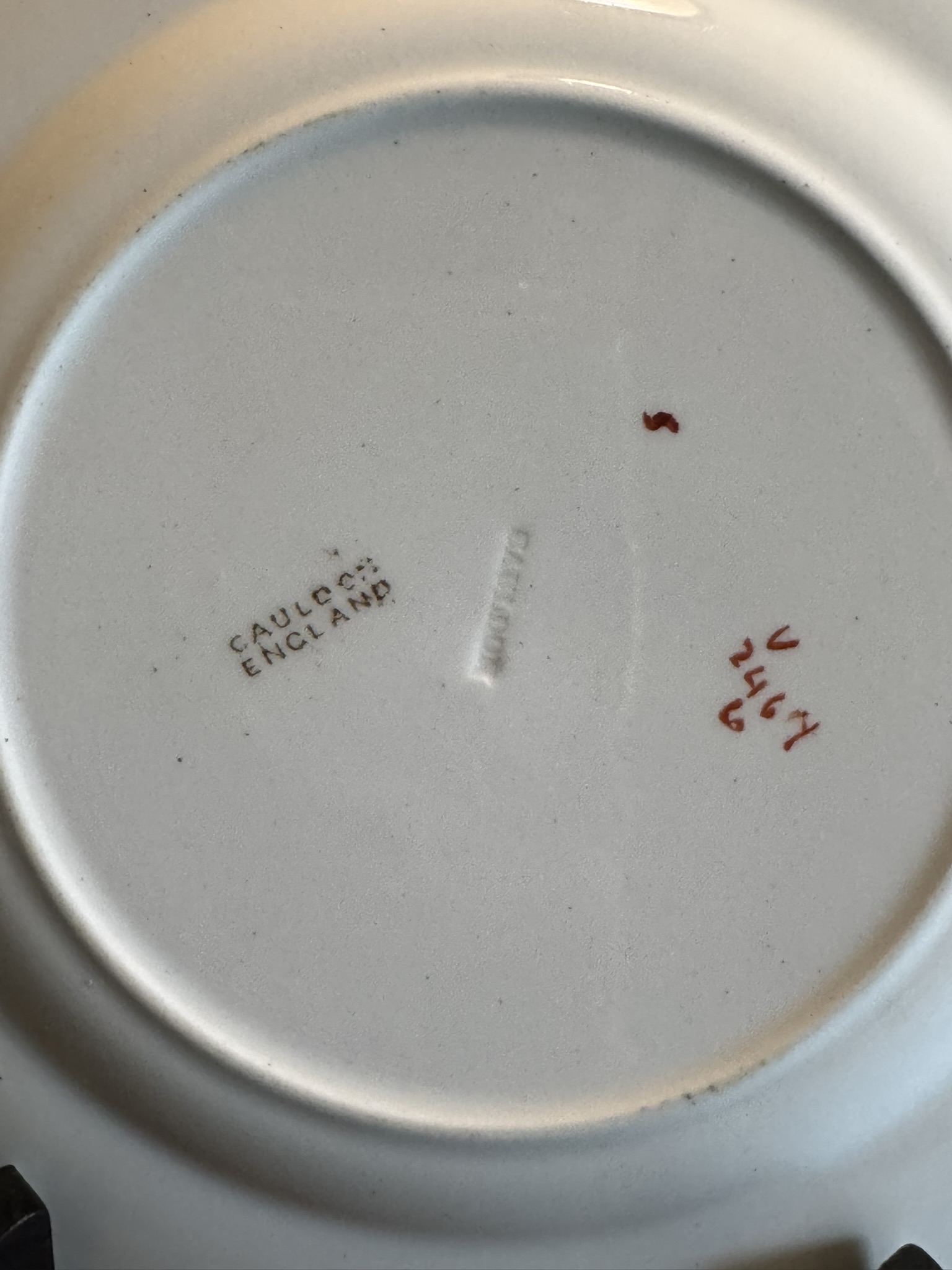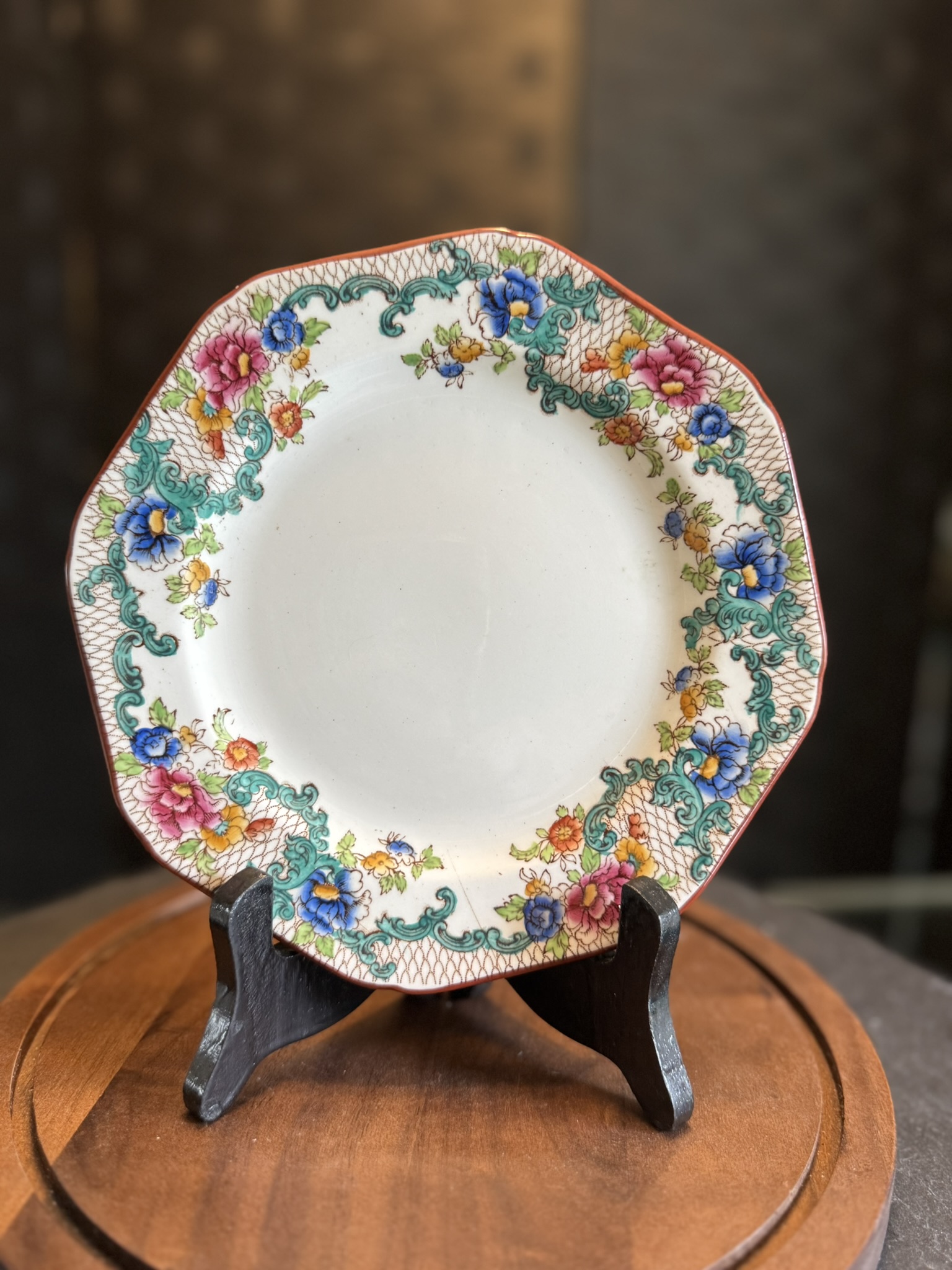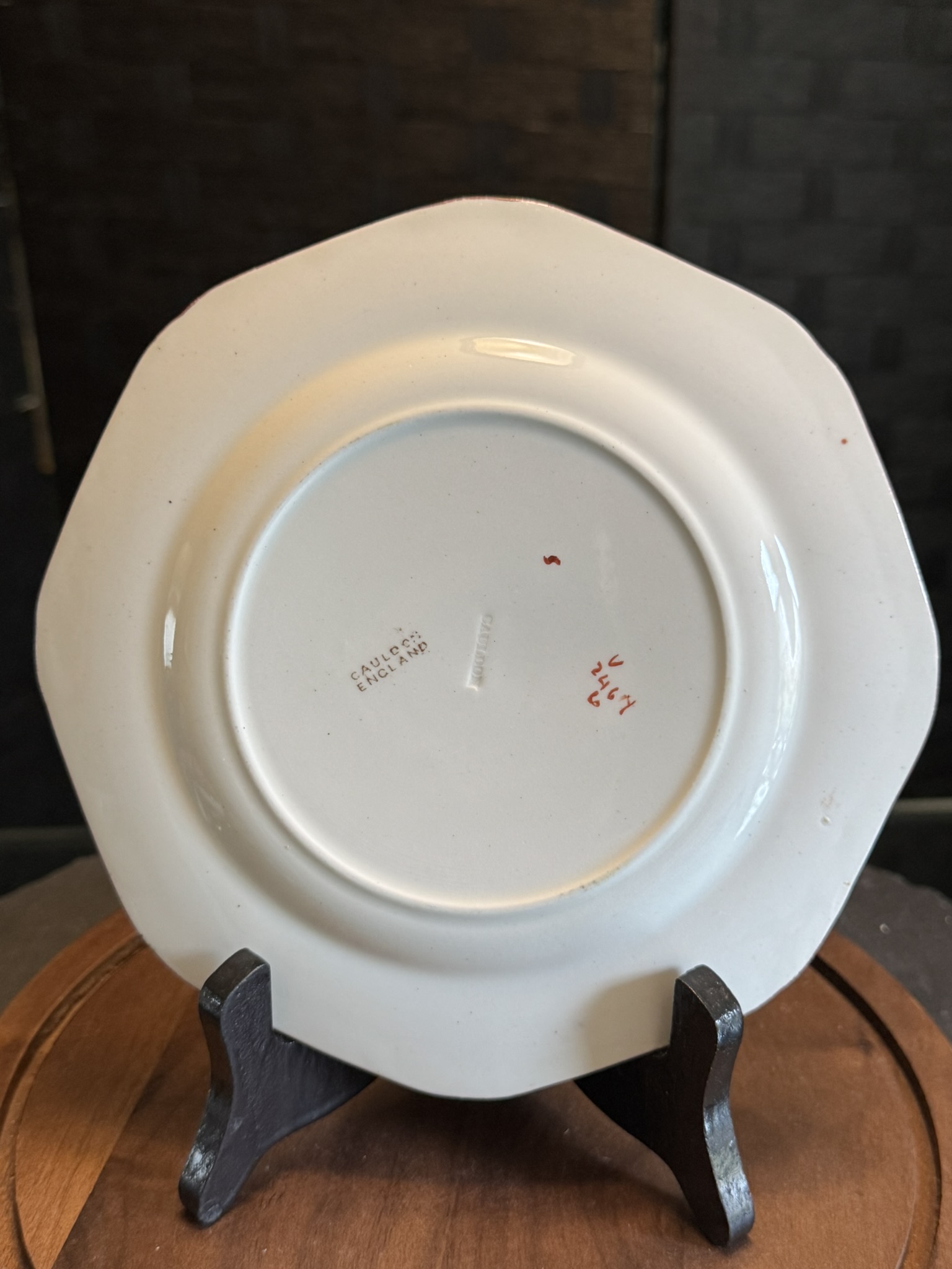 A late‑19th to 20th‑century Royal Cauldon “Floradora” pattern plate with red trim.