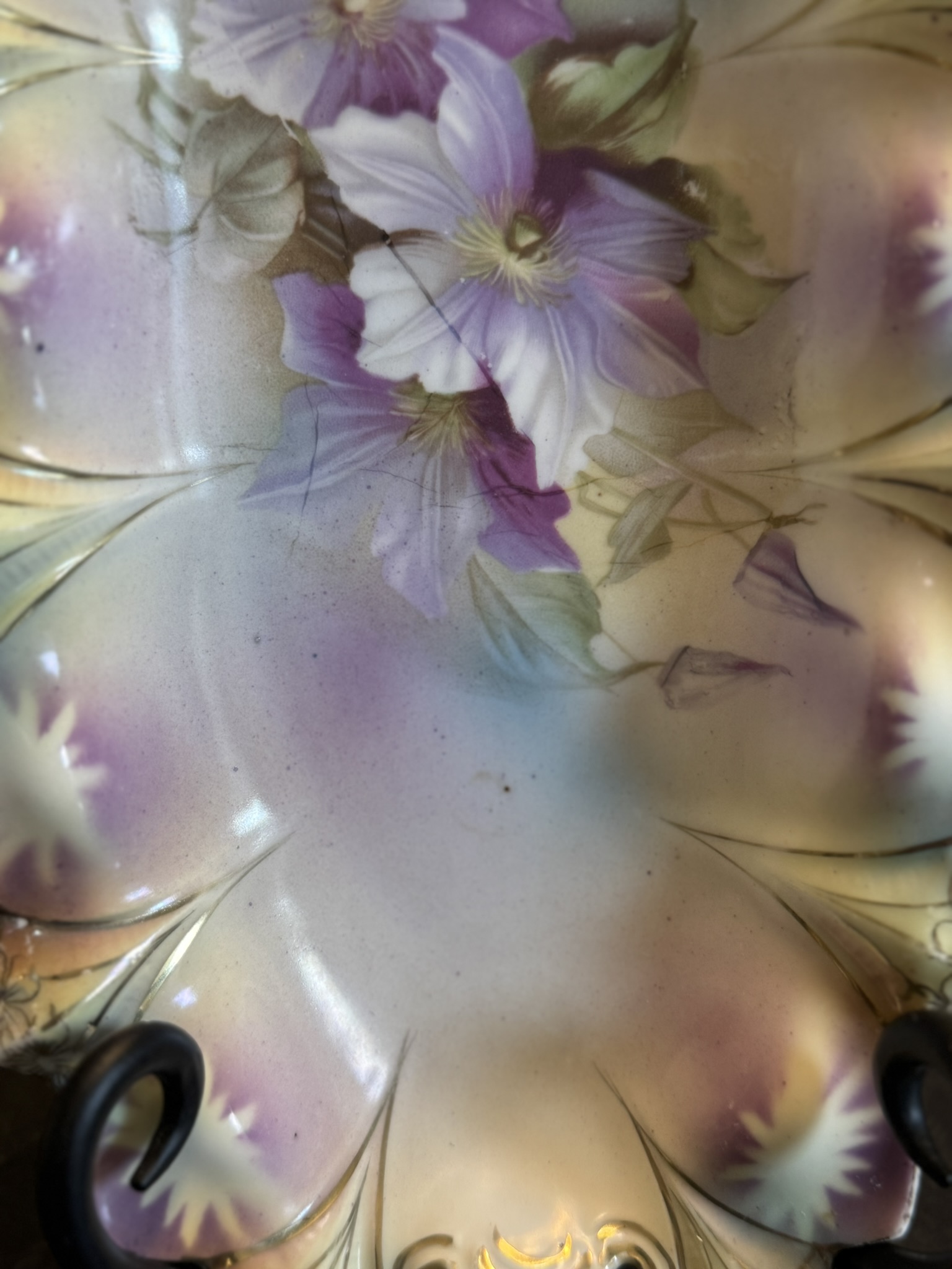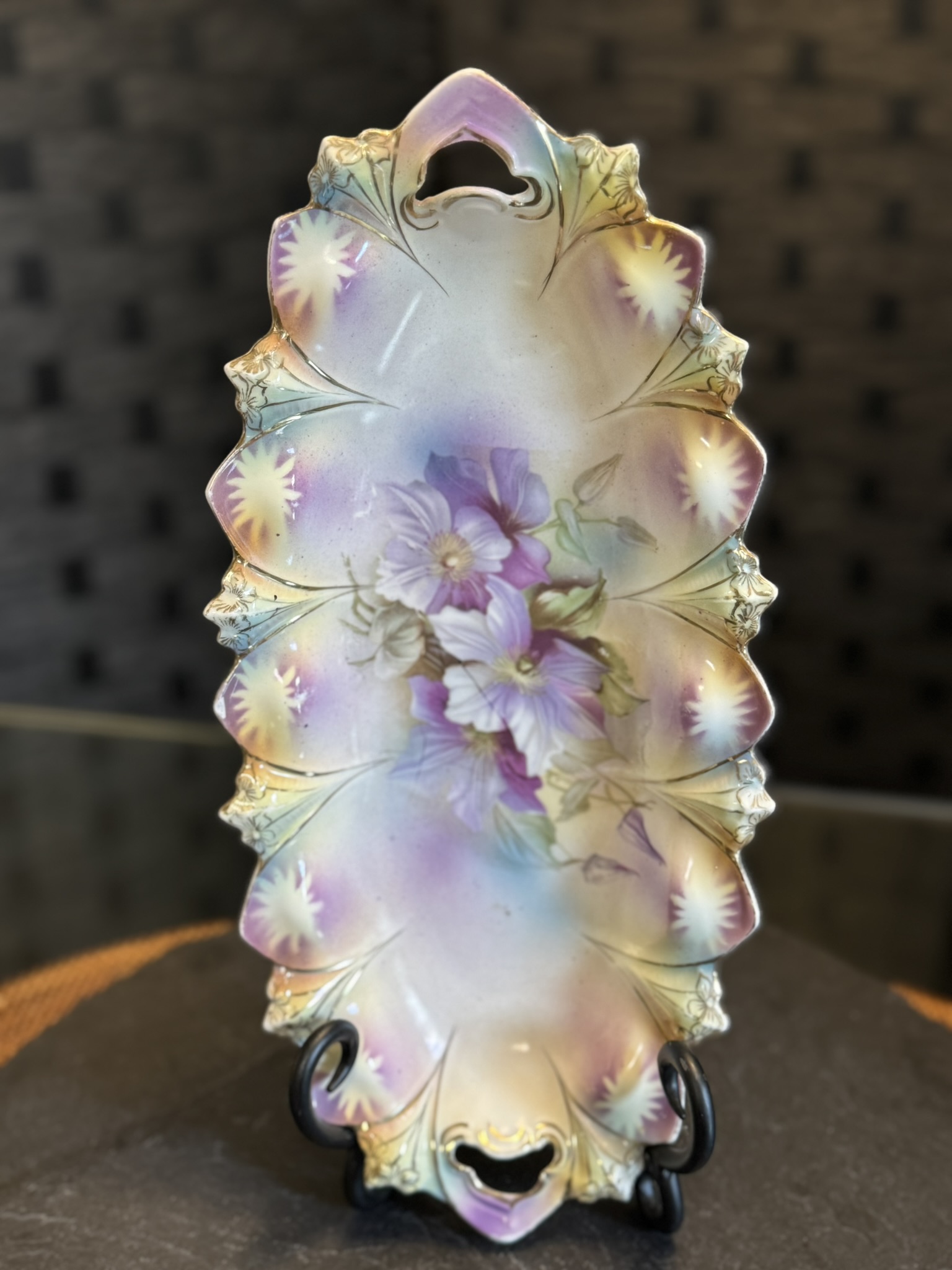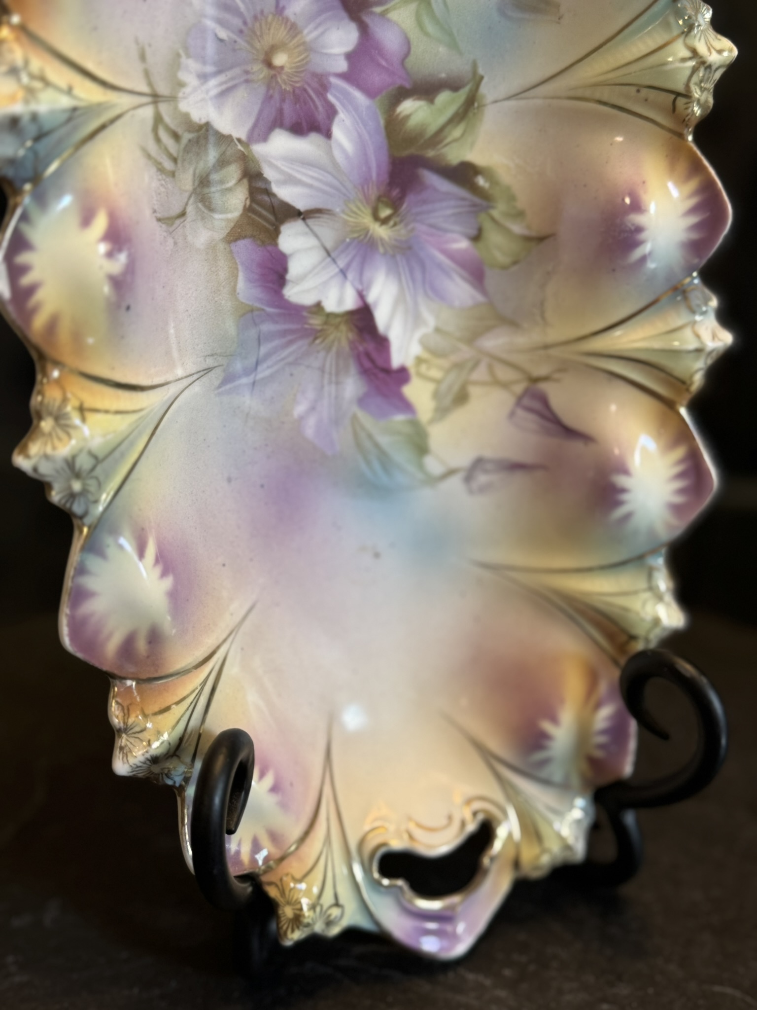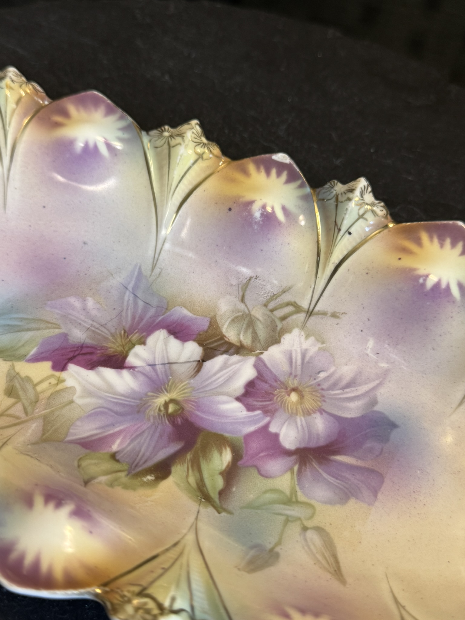Exquisitely molded and delicately painted, this RS Prussia dish captures the opulent elegance of late-19th-century European porcelain. The elaborate florals and gold detailing exemplify the fine craftsmanship and romantic aesthetic that defined the brand.