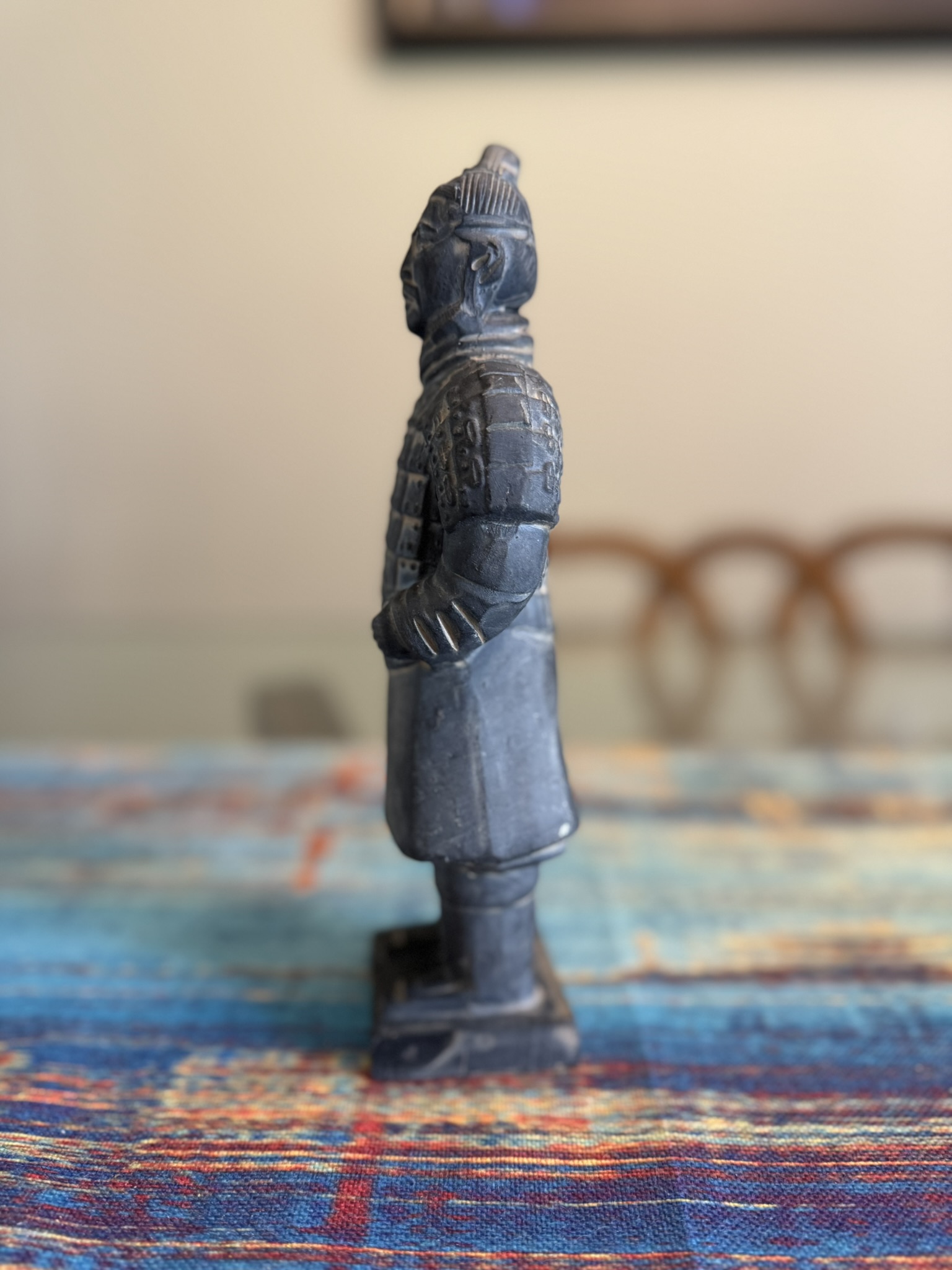 Inspired by the ancient Terracotta Army of Qin Shi Huang, this mid-century reproduction evokes a sense of imperial grandeur scaled for the collector’s shelf. Discovered in 1974, the original life-sized soldiers stunned the world — and vintage replicas like this became prized souvenirs and décor items.